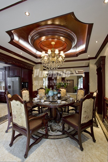 此案設(shè)計(jì)師以傳統(tǒng)莊重典雅作為整體設(shè)計(jì)思路。強(qiáng)調(diào)古典之美和自然之美。通過大量的改建,在保證空間通透和暢快的基礎(chǔ)上進(jìn)行有效的分割分區(qū)。對餐廚進(jìn)行了有利的優(yōu)化,相對獨(dú)立與相互聯(lián)系,提供更多的空間方便廚房的使用功能??推珡d之間通過隔斷墻進(jìn)行分區(qū),既解決了中國式的視聽墻,又巧妙結(jié)合了偏壁爐裝飾,讓冬日里坐在小廳賞魚的人兒享受熊熊爐火帶來的暖意。采用大量的落地窗,讓花園景觀映入室內(nèi),做到充分的借景,保障足夠的光線通透和空氣的對流,暢通。動(dòng)線布局合理,使原本獨(dú)立的空間相互融合貫通。