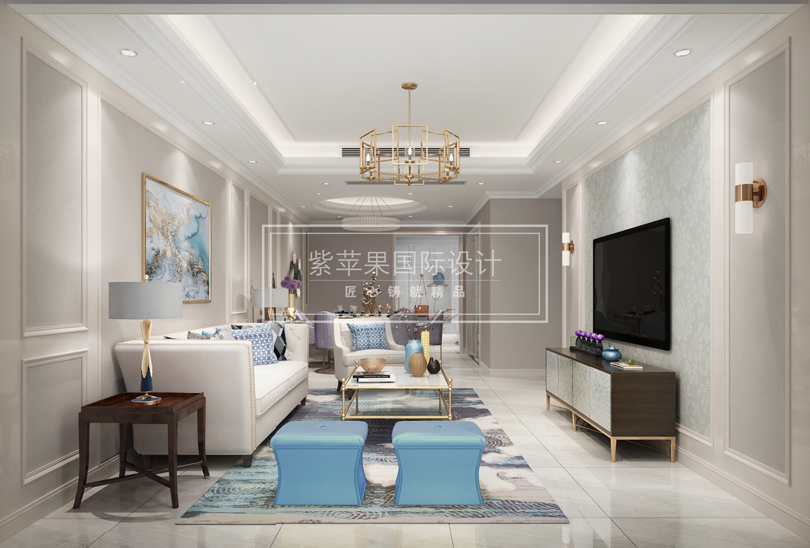 業(yè)主是幸福的一家三口,女兒大學畢業(yè),對于未來的三口之家,有自己獨特的認識,希望能擁有簡潔、清新,且富有質感的居住空間,輕奢美式風格恰好符合路這一點。