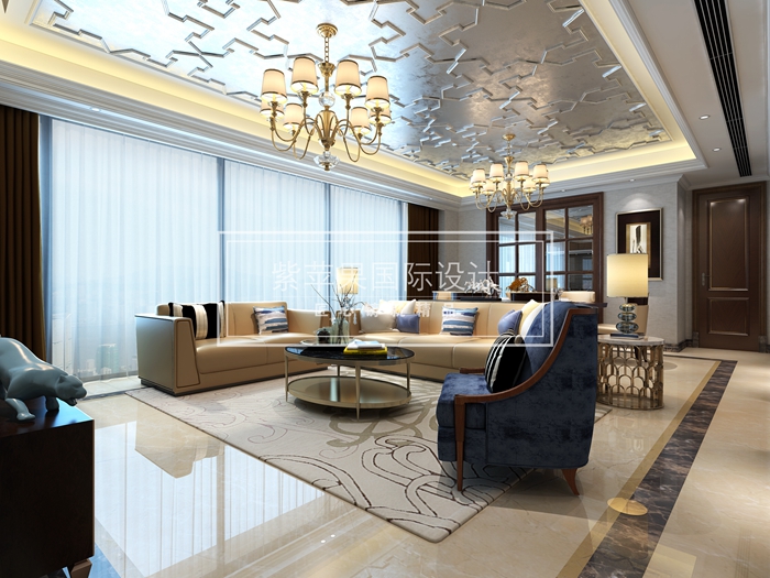 客廳:客廳作為待客區(qū)域,一般要求簡潔明快,同時(shí)裝修較其它空間要更明快光鮮,通常使用大量的石材和木飾面裝飾;美國人喜歡有歷史感的東西,這不僅反映在軟裝擺件上對(duì)仿古藝術(shù)品的喜愛,同時(shí)也反映在裝修上對(duì)各種仿古墻地磚、石材的偏愛和對(duì)各種仿舊工藝的追求上。