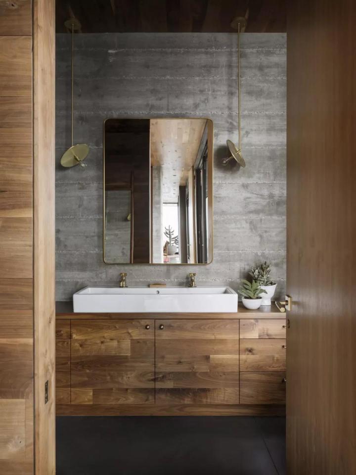 「裸感」設(shè)計沒有一定的成規(guī),但并不是無章可循。它往往采用原木、水泥、石材等天然材質(zhì)注入空間,為居者營造出放松自在的空間感受。這些材質(zhì)大多呈現(xiàn)素面朝天的特點,展露原始的光澤、斑點或紋理,自然逼真、不事雕琢,讓天然的美完整地體現(xiàn)出來。