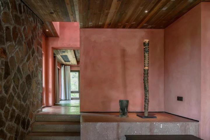 即便拋開審美層面,單從實用角度欣賞,天然材料的肌理也具有凈化空氣、防風(fēng)降噪、調(diào)節(jié)濕氣的作用,運用到冷冰冰的建筑之中,更是展現(xiàn)出非凡的生命力,處處充滿暖意與靈性。