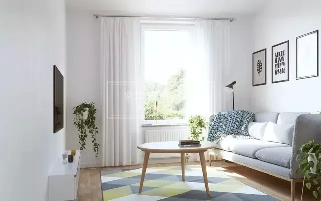 上至天花板、下至地板的窗簾自帶延伸效果,視覺(jué)上制造了一種更大的空間感,給人感覺(jué)就是你家真大的錯(cuò)覺(jué)。