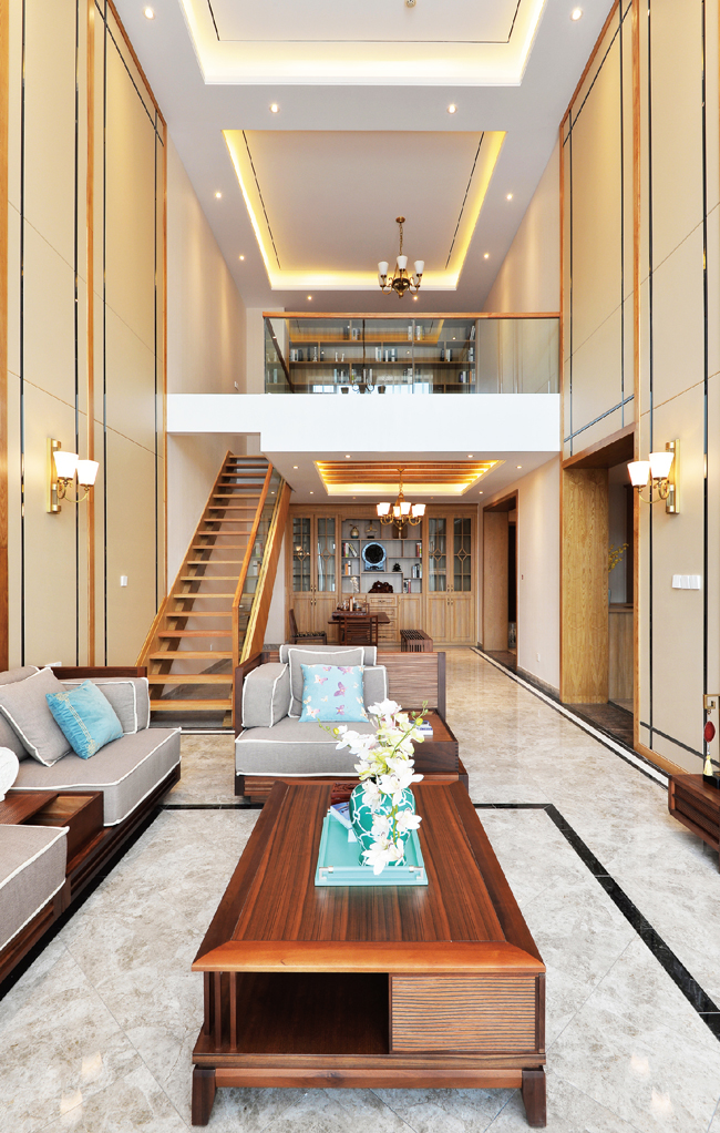 紫蘋果設計師在與業(yè)主一家人充分溝通后,決定采用新中式的設計風格。設計師大量采用了大理石、玻璃等現(xiàn)代化的材質(zhì),搭配上傳統(tǒng)中式中實木、陶瓷等元素,讓古典的國粹充滿了現(xiàn)代的氣息,營造出禪意雅致的家具空間。設計師在原戶型的基礎上做了部分調(diào)整,將二樓原有空間挑空,并設置了落地窗,讓陽光直射入室,讓整個客廳瞬間變得明亮大氣。此外,設計師匠心獨運,在二樓樓梯口做了簡單的修改,搭建出一個視野和采光極佳的書房,絕世而獨立,頗有超然閑適的意境。
