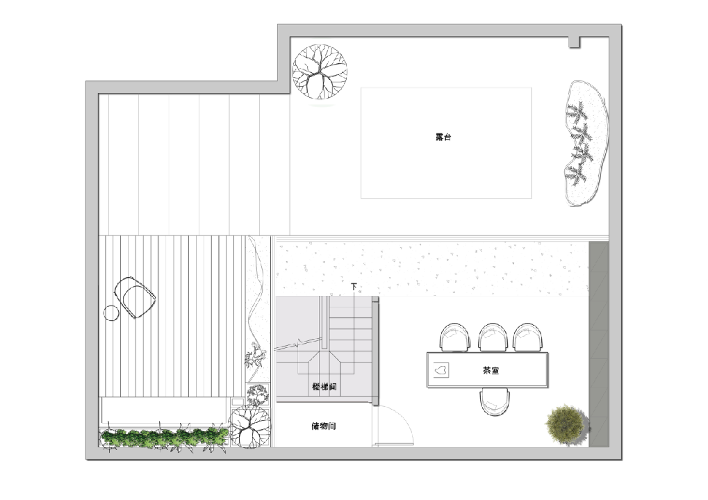 ③露臺(tái)我們?cè)O(shè)計(jì)師做了好幾稿方案,主要都已休閑娛樂功能為主。