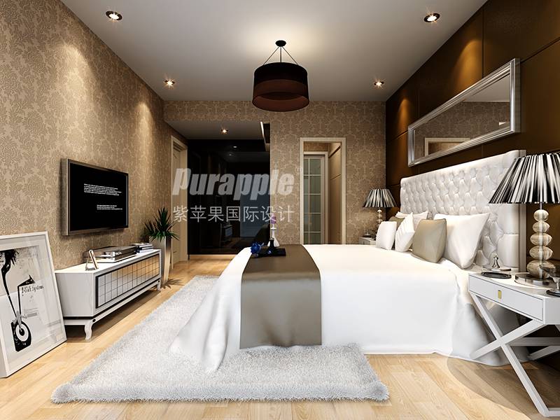 轉(zhuǎn)眼就到臥室,我們發(fā)現(xiàn)這里的軟裝設(shè)計(jì)就比較有國際范了,軟裝設(shè)計(jì)師的靈感來源于中國古代宮廷的床榻,之后又添加了一點(diǎn)現(xiàn)代時(shí)尚的元素。